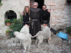 ” La Romita” – scrivono i nostri sul blog di Guide in Cammino – “immersa nella splendida lecceta pura, ci è apparsa come un oasi dorata! E’ bellissima: un villaggio in pietra ristrutturato grazie alla ferrea volontà di Frà Bernardino, dove si respira il vero spirito francescano; cellette pulite e semplicissime dove dormire, senza corrente elettrica; acqua da prendere con i secchi, che aiutano nella pratica della moderazione dello spreco; canti, condivisione di cibo (dell’orto) e lavoro, preghiere nella piccola cappella con le campane suonate ancora a mano, che quando suonano vengono accompagnate dagli ululati dei tre cani abitanti fissi della Romita assieme a Frà Bernardino e Fabio. La dimostrazione che una vita diversa è possibile”.