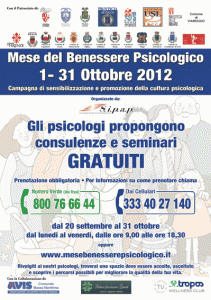 Il Mese del Benessere Psicologico è una campagna di sensibilizzazione e promozione della cultura del benessere della persona che punta al miglioramento della qualità della vita, realizzato grazie alla partecipazione di psicologi, liberi professionisti, che offrono consulenze e seminari gratuiti.