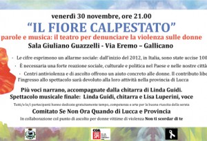 Si intitola “Il fiore calpestato” ed è una serata organizzata dal gruppo Senonoraquando di Lucca: uno spettacolo di parole e musica per denunciare la violenza sulle donne, una piaga sociale che affligge anche la lucchesia.