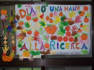 Per l’occasione i bambini diventano grafici pubblicitari e ogni anno inventano nuovi slogan come: “mettiamo in moto la ricerca”, “non stare alla finestra aiuta la ricerca”…, “diamo una mano alla ricerca”, quest’ultimo ideato per il prossimo appuntamento, questo sabato, 26 gennaio l’anno 2013.