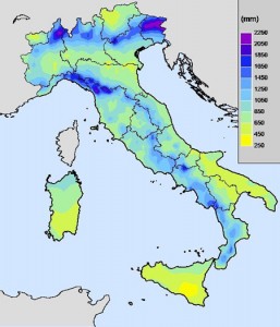 Visto che sul tempo nei prossimi giorni non c’è veramente molto da dire colgo l’occasione per fornire una dato, indicativo di quanto l’inverno 2013 si sia dimostrato generoso dal punto di vista precipitativo. La nostra zona ha una media pluviometrica storica (vedi foto) di circa 1700 – 1800 mm annui (dato visto al ribasso negli ultimi anni nei quali sono mancate le perturbazioni atlantiche ed attestatosi a circa 1200-1300 mm): dal 1 gennaio, compresa anche la neve scioltasi e “conteggiata” dal pluviometro abbiamo raggiunto i 550 mm. Nel giro di poco più di due mesi, quindi, abbiamo praticamente cumulato 1/3 della pioggia che cade, statisticamente, in un anno.