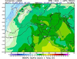 Domenica 17 marzo: cielo molto nuvoloso con precipitazioni, dapprima deboli ma in intensificazione al pomeriggio fino a moderate-forti. Ulteriore peggioramento nella notte. Temperature in netto aumento, venti forti meridionali.