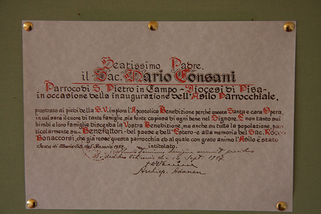 Tante e tante le opere da lui realizzate appunto; oltre che religiose, anche di carattere sociale e di pubblica utilità. Don Mario ha lasciato un grande patrimonio a questa comunità che sicuramente, come è stato ricordato anche dai diversi interventi di ieri, durante l’inaugurazione della mostra, di lui conserva il ricordo di una persona sincera e di profonda umanità, nonostante l’apparente scontrosità che poteva ingannare chi lo incontrava per la prima volta.