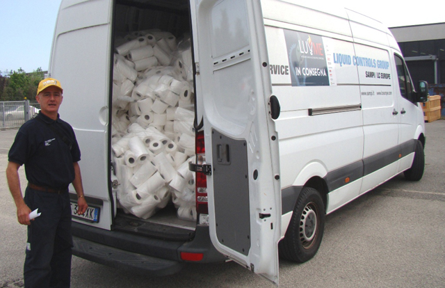 Le aziende Sampi, KME Italy e Fapim, aderenti al Progetto LU.ME hanno fornito alcuni furgoni aziendali per il ritiro e la consegna della carta donata in forma assolutamente gratuita da PCMC e Gambini, due delle imprese che partecipano a It’s Tissue.