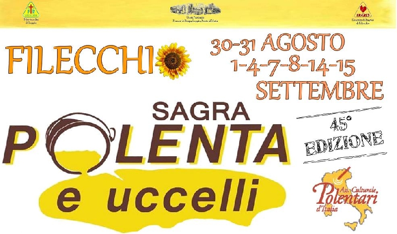 La Sagra Polenta e Uccelli si appresta a tagliare il traguardo delle quarantacinque edizioni. L’appuntamento, a cura dei volontari dell’Unità Pastorale di Fornaci di Barga, Loppia e Ponte all’Ania, avrà luogo quest’anno nei giorni dal 30 agosto al 15 Settembre, allungandosi quindi di un fine settimana rispetto all’abituale calendario; la festa, che si tiene presso gli impianti parrocchiali di Filecchio, chiude, come ormai tradizione, il programma dell’estate barghigiana. Anche per il 2013 gli organizzatori sono riusciti a stilare un ricco calendario di appuntamenti ricreativi oltreché gastronomici.