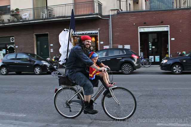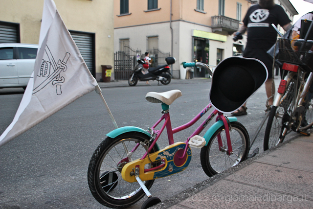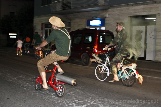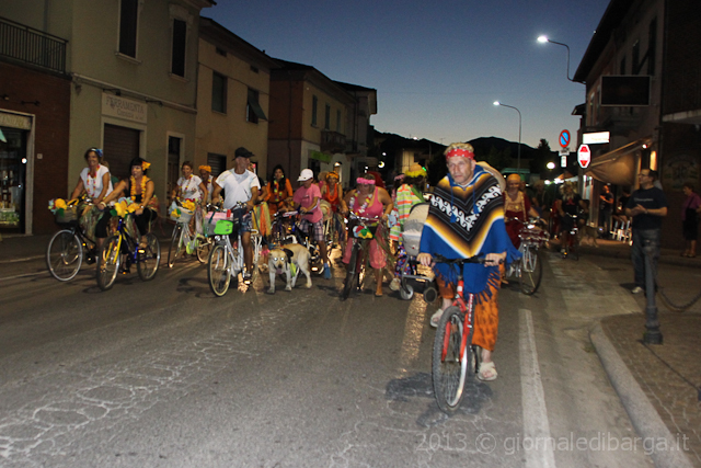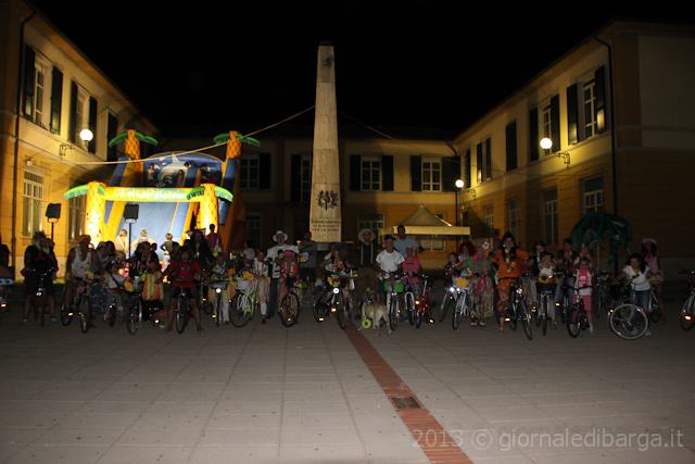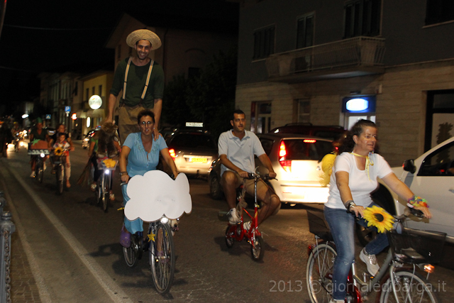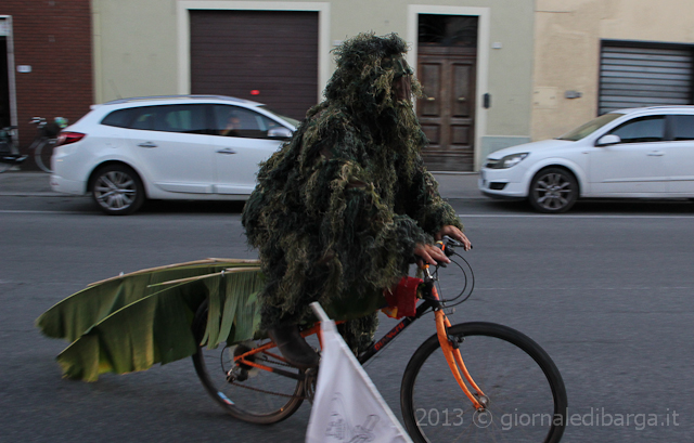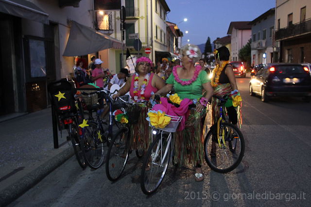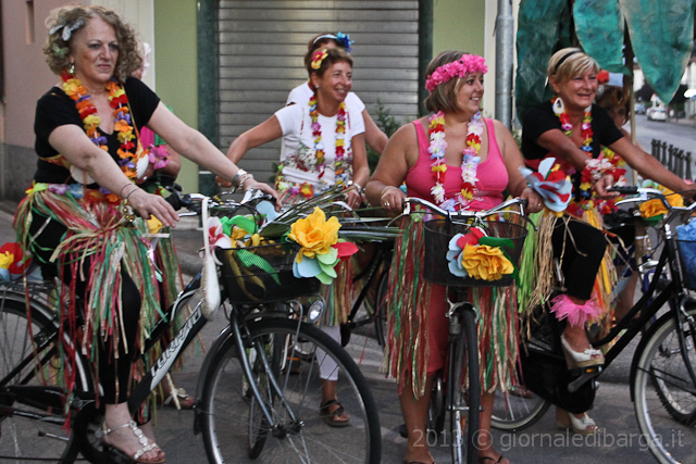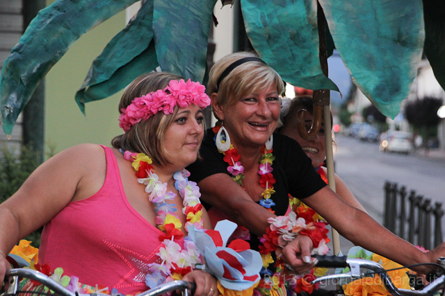 L’appuntamento per il Bicitruzzo 2013, andato in scena mercoledì 31 luglio, era per tutti al caffè Dejavu in via della Repubblica dove, sul far dell’aperitivo, hanno cominciato confluire pirati, clown, personaggi della letteratura (avvistati con certezza Tom Sawyer, Peter Pan e Trilly Campanellino, Cappuccetto Rosso e il Lupo) ed una vasta squadra di hawaiane in gonnellino di paglia. Tutti o quasi rigorosamente in sella a biciclette possibilmente truzze, agghindate, addobbate, bizzarre; qualcuno addirittura con passeggino e/o carrozzina porta bebè.