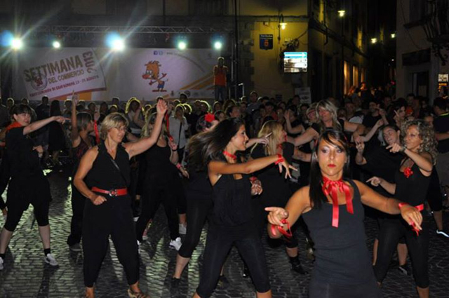 Queste parole, di Eva Ensler, sono riecheggiate da una voce fuori campo nel bel mezzo della serata della Settimana del Commercio, rinominata Notte Rosa, che si è svolta a Castelnuovo di Garfagnana sabato 17 agosto. Alle 22.15 circa, le migliaia di ospiti e visitatori che affollavano il centro storico, si sono improvvisamente trovati spettatori di un Flash Mob, quando al termine della lettura, un numeroso gruppo di donne, vestite di nero con particolari rossi, ha cominciato a danzare in mezzo alla piazza sulla canzone “Break The Chain”, spezza la catena, colonna sonora del flash mob contro la violenza sulle donne promosso il 14 febbraio scorso a livello mondiale. La danza collettiva è terminata con il dito di tutte le partecipanti puntato verso la maestosa Rocca Ariostesca di Castelnuovo, dalla quale è stato fatto scendere uno striscione con un messaggio pesante come un macigno “No Excuse. L’amore non lascia lividi. L’amore è un’altra cosa”.