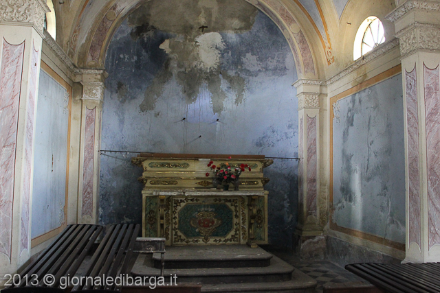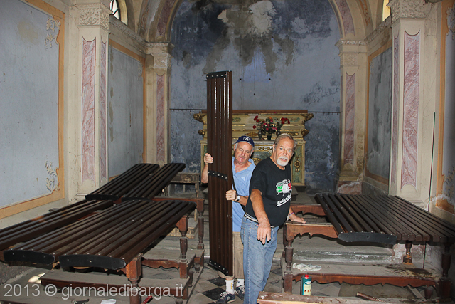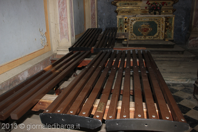 Dopo lo smontaggio delle panche, il restauro è avvenuto utilizzando i locali dell’ex chiesina che si trova all’interno del complesso dell’ISI di Barga, delle scuole superiori. Un luogo anche questo che meriterebbe più attenzione ed anche un bel recupero, ma non è detto che, proprio grazie agli Alpini, presto non si torni a parlare anche del “salvataggio” di questa chiesina antica, che conserva all’interno ancora molti arredi originali.