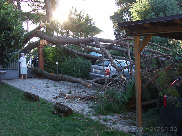 Intanto, sotto l’occhio vigile degli addetti ai lavori pubblici e alla protezione civile, operai specializzati stanno rimuovendo tronco e rami che non solo hanno invaso il giardino dei signori Guedri, ma che hanno anche interrotto una piccola parte di viabilità, impedendo di entrare e di uscire di casa ad un altro paio di famiglie.