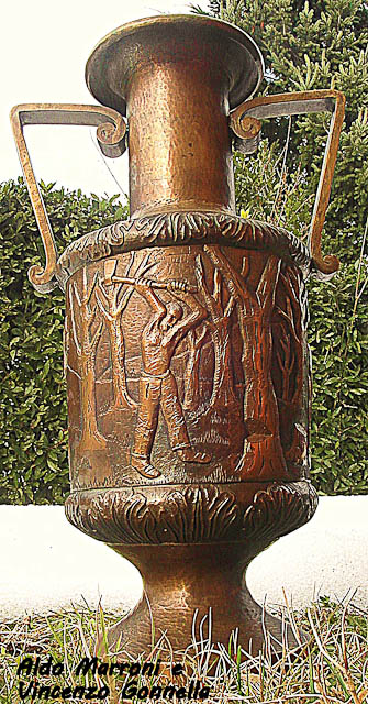 Quei bossoli di ottone, che gratuitamente gli si offrivano, dettero ai nostri artigiani un particolare stimolo creativo, quasi una nuova vita artistica, prendendo a trasformarli da produttori di morte in squisite opere d’arte, essenzialmente in brocche e vasi porta fiori stilizzati e ornati con incisioni di varia natura, soprattutto floreali, alcuni aventi per soggetto il lavoro agreste e montanaro della nostra gente. In questo particolare campo si cimentarono Marroni e Gonnella, ma anche altri, come Piol e Rizzardi.