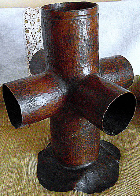 “Vede, da un disco di rame è stato tirato su, a martello, un tubo con sei derivazioni e, stia attenta, senza saldature”.