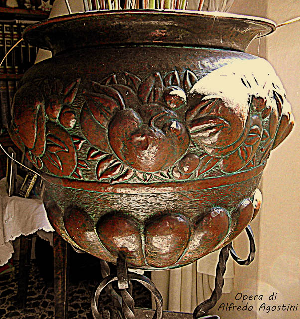 Ma dal fondo di un cassetto saltano fuori vecchie fotografie annerite di lavori di altro genere; vasi di rame dalle forme panciute arricchite da motivi floreali, piatti ornamentali, coppe a sbalzo. Oggetti che hanno un posto d’onore, oggi, nelle case di chi le possiede: l’elegante sobrietà delle loro linee, i riflessi pacati del rame, di cui son fatti, rendono più barghigiana una casa di Barga.