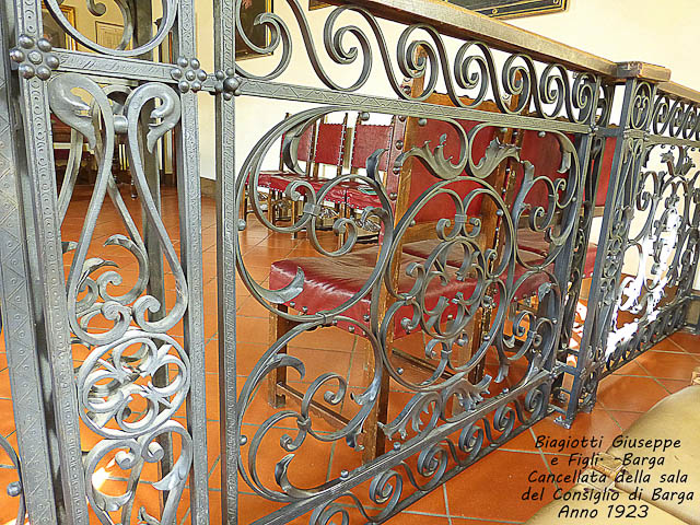 Seguitiamo il nostro percorso con la famiglia dei Biagiotti di Barga, cioè Giuseppe, poi i figli Alfredo e Antonio. Giuseppe fu un’abile maestro detto “Picchietto”, il cui lavoro si esemplifica nella ringhiera all’interno della sede del Partito Democratico di proprietà di Maria Vittoria Stefani, e nel cancello dello stesso stabile che prospetta in via di mezzo, come nella cancellata che divide la sala del Consiglio Comunale di Barga dal pubblico; opere di fine e bella fattura. La cancellata di palazzo Pancrazi fu richiesta da parte del Comune alla ditta Biagiotti nel 1923, ed è bella al punto tale da rendere oltremodo decorosa la stessa sala di palazzo Pancrazi, prima attrezzata alla meglio.