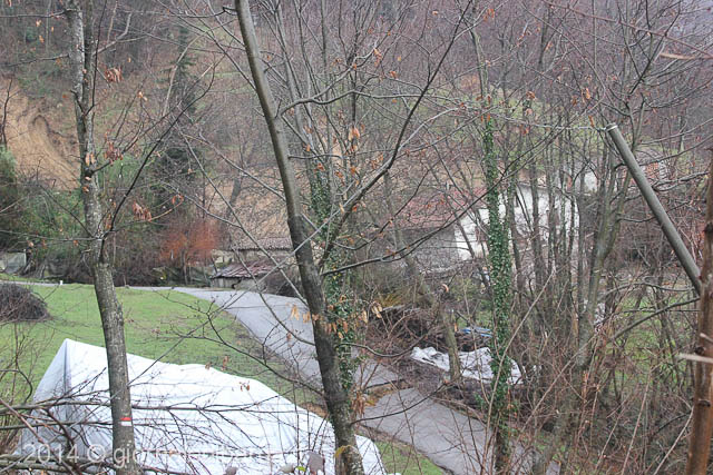 Tutto il terreno circostante è una gigantesca frana ancora attiva: pali della luce e del telefono divelti, diversi tratti della vecchia strada di Renaio che non esistono più, poggi che stanno letteralmente scivolando verso il basso. Un inferno. C’è un’altra casa a poche decine di metri dal fronte della frana, ma per il momento si sta valutando la situazione. La speranza è che il terreno su cui sorge sia più solido e possa reggere e sembra che sia così.