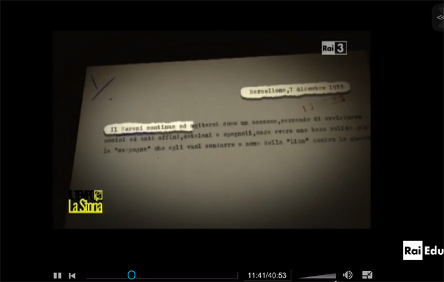 C’è anche una inedita testimonianza della presenza del barghigiano Bruno Sereni, il fondatore di questo giornale, tra le file degli antifascisti italiani che giunsero a Barcellona per combattere nella guerra civile, nel bel servizio andato in onda su Rai3 e RaiStoria nella trasmissione Il tempo e la Storia.