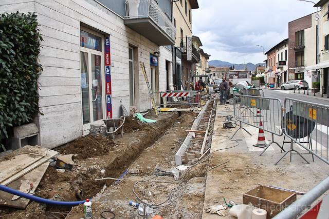 I lavori sono iniziati verso la metà di marzo ed in un mese prevedono il completo disfacimento di 300 metri del marciapiede che va dal bivio di viale Cesare Battisti al Caffè Novecento affinché sia sostituito con piastre analoghe a quelle già installate sul lato opposto.