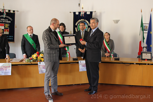 Il primo, ritirato dai figli Umberto e Natalia, è stato dedicato alla figura di grande uomo e fine giornalista del nostro fondatore Bruno Sereni, scomparso nel 1986 ma ancora ricordato da tutti come persona retta e innamorata della sua terra. L’altro, consegnato ai sindaci presenti, si tratta dell’attestato di benemerenza che il governo ha fatto pervenire per riconoscere l’impegno della valle del Serchio (e non solo della Garfagnana) durante la Resistenza, durante la quale anche i comuni della bassa valle furono protagonisti e a volte vittime dell’ultima fase della seconda guerra mondiale.
