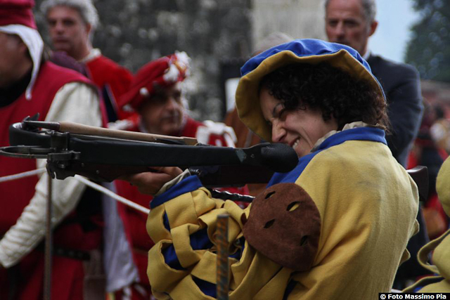 Anche se minaccioso, quest’anno il tempo non ha rovinato i giochi del Calendimaggio che dal 2001 si tengono a Barga in rievocazione di antiche tradizioni. Grazie alla consolidata collaborazione tra comune di Barga e associazione Historica Lucense (ai quali quest’anno si aggiunge la fondazione Conservatorio di Santa Elisabetta), domenica 11 maggio, i balestrieri di mezza Italia sono arrivati sull’arringo del Duomo per misurarsi – con costumi ed armi medioevali – nell’abilità con la balestra.