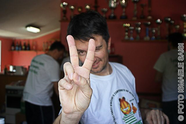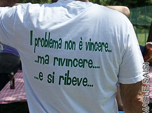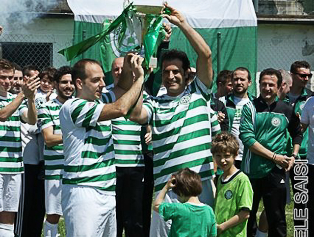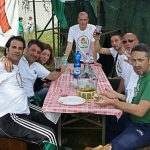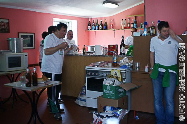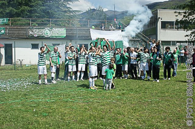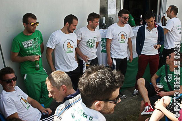 Sicuramente più emozionante è il dopo partita, Capitan Martinelli alza al cielo la seconda coppa per la vittoria del campionato consegnata dal presidente dell’AICS di Lucca, dopo quella della scorsa stagione. Iniziano i festeggiamenti con la specialità della casa, il grigliato biancoverde, si alternano alla griglia Domenico Mimmo Carbonara, Paolo Nervo Rocchi, Mauro Selva Venturelli, mentre il barino è ottimamente diretto da Luisa e Manuel con l’apporto speciale di Cristina e Maurizio Tatta Poli, sicuramente una formazione di alto livello.
