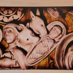 Ma c’è di più in questa esposizione: un tocco davvero originale , con una mostra in una mostra, ospitata…all’interno di un bagno: un’ambientazione surreale e metafisica di uno stato onirico frequente, come ama definirla l’autore.