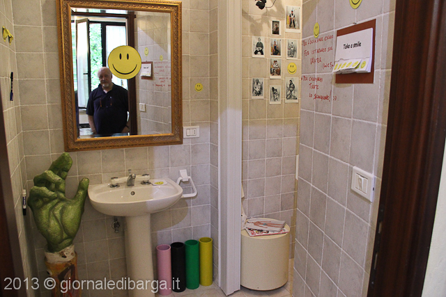 Le foto e il tema raccontati in questa…toilette d’arte, sono veramente originali ; il tutto collegato da un messaggio di fondo, lo smile, ovvero il sorride ed il prendere la vita con più leggerezza.