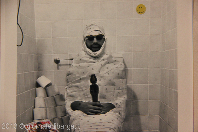 Ma c’è di più in questa esposizione: un tocco davvero originale , con una mostra in una mostra, ospitata…all’interno di un bagno: un’ambientazione surreale e metafisica di uno stato onirico frequente, come ama definirla l’autore.