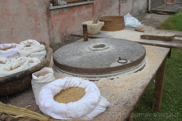 Cornice alla festa, purtroppo caratterizzata da un tempo afoso e da qualche goccia di pioggia, anche la rievocazione delle tecniche di trasformazione del frumento quali la tostatura dell’orzo e la conseguente preparazione della bevanda; la macinatura della farina e la preparazione del pane e poi l’esposizione di una miniatura funzionante di un metato di inizio secolo, altra tappa fondamentale e caratteristica della vita agreste delle nostre parti.