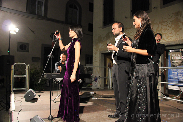 Chiusura affidata ad un fuori programma di grande effetto, con l’esecuzione corale di Libiamo ne’ Lieti calici di Giuseppe Verdi innalzando verso il pubblico calici di vino per un brindisi ben augurale a questa nuova iniziativa destinata a crescere e divenire parte dell’estate barghigiana.