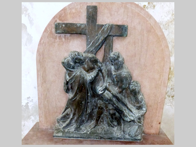 Con questo pensiero eccoci giunti alla Cappella dei Caduti, che è del Comune di Barga, dove ci sono delle opere di bronzo artisticamente interessanti, come questa in ricordo di Roberto Bindi morto a seguito della guerra libica, che prima di qui era esposta sulla facciata del Palazzo Comunale. Come possiamo leggere, fu eseguita dall’artista Enrico Cadolini di Roma nel 1913 su commissione degli Ufficiali Granatieri di Sardegna.