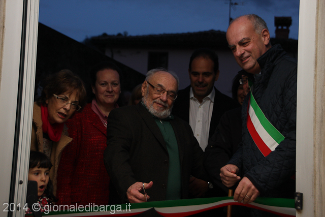 A tagliare il nastro tricolore, uno dei fondatori della scuola di musica di Barga, il patron di Barga Jazz, Giancarlo Rizzardi.