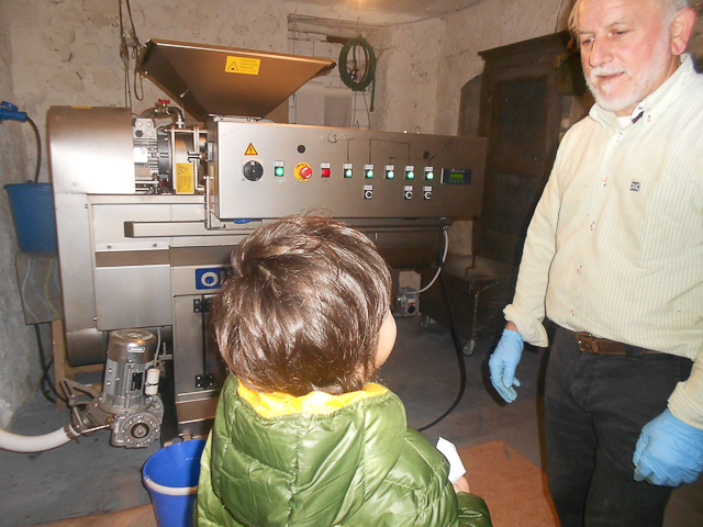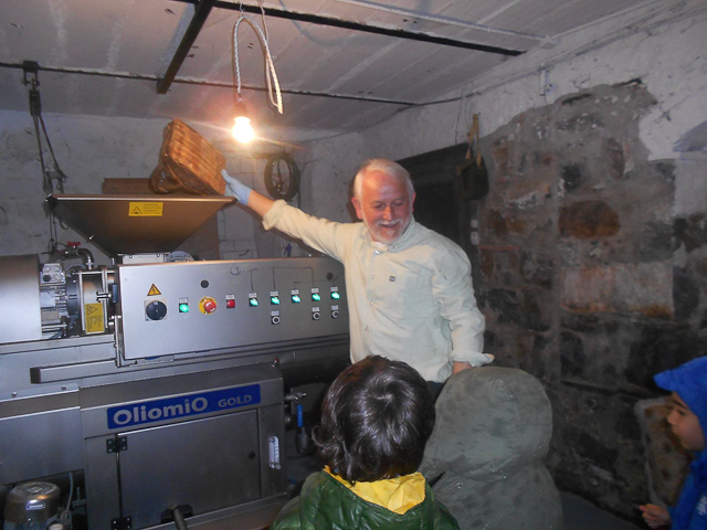 Leonello ha invece mostrato il frantoio situato nella sua cantina, dove i bambini hanno osservato interessati le fasi della lavorazione che portano alla produzione dell’olio. I bimbi sono stati anche deliziati da una piccola e gradita merenda preparata usando l’olio come ingrediente, e hanno ricevuto in dono delle graziosissime bottigline, decorate con ramoscelli di olivo, e delle olive che useranno a scuola per completare la fase di osservazione diretta.