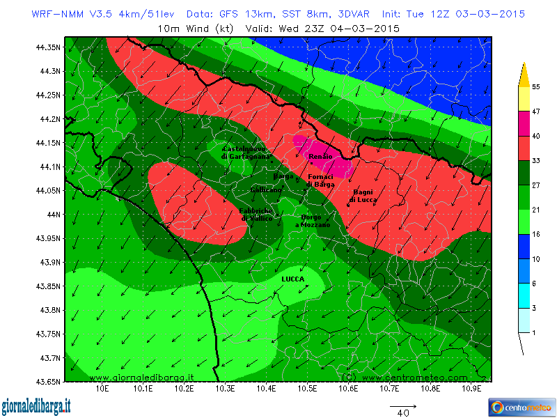 Nella serata tutto il sistema depressionario traslerà in direzione della Puglia ed in sole 12 ore lo ritroveremo sul Gargano; ecco quindi che durante la tarda serata si attiveranno forti venti di grecale (vedi mappa di apertura) che inibiranno le precipitazioni nel fondovalle, concentrandole in Appennino e nelle zone esposte allo sconfinamento da est, dove assisteremo a vere e proprie bufere di neve.