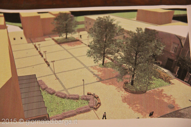 Verrà rifatta completamente la pavimentazione della piazza, verranno realizzate colonnine per acqua e luce, verrà rifatta completamente l’illuminazione non solo di questa piazza ma anche di via Mordini, Via Pascoli, via Pontevecchio, verranno ridisegnati gli accessi, creando una sorta di percorso ideale che unirà Barga Vecchia con il Giardino; verranno infine ridisegnate le aree a verde.