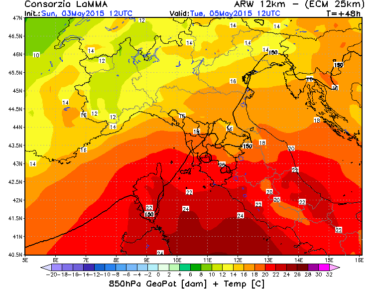 In questo caso, però, sia il cielo che sarà spesso solcato da nubi alte, sia l’elevato tasso di umidità presente nei bassi strati, non permetterà di andare oltre i 25-26 gradi in mediavalle, 26-28 nella piana di Lucca. Inoltre già da mercoledi sera questa piccola “ondata” di caldo potrà ritenersi conclusa anche se le carte mostrano nuovi e piu organizzati tentativi di portare il caldo estivo sulla nostra Penisola già a partire dalla seconda decade di maggio.