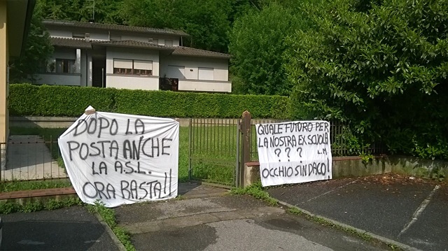 A Ponte all’ania ci hanno tolto tutto. Ci avete lasciato in mutande. Dopo la posta ora anche il servizio veterinaria. Non ci rimane più nessun servizio e questo vuol dire mettere in maggiore difficoltà anche i negozi. Si possono riassumere così alcuni striscioni mentre altri chiedono al sindaco che cosa intende fare adesso con l’ex scuola elementare che rimarrà presto vuota.