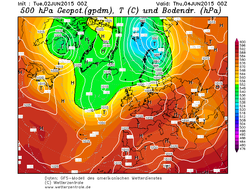 Nella cartina di apertura notiamo come una vastissima zona con geopotenziali elevati (la colorazione in rosso) si estenda dal Portogallo fino alla Russia con le nostre zone, colorate di un rosso più intenso, assolutamente incluse nel caldo abbraccio dell’alta pressione.