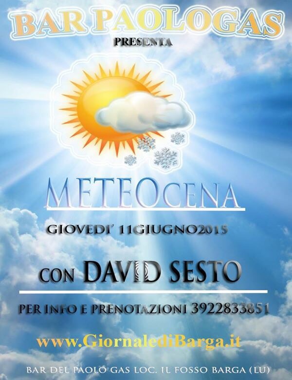 Era un’idea che coltivavamo da tempo ed adesso, grazie alla collaborazione ed al supporto del Bar del Paologas, l’abbiamo resa possibile: una cena dedicata alla meteorologia.