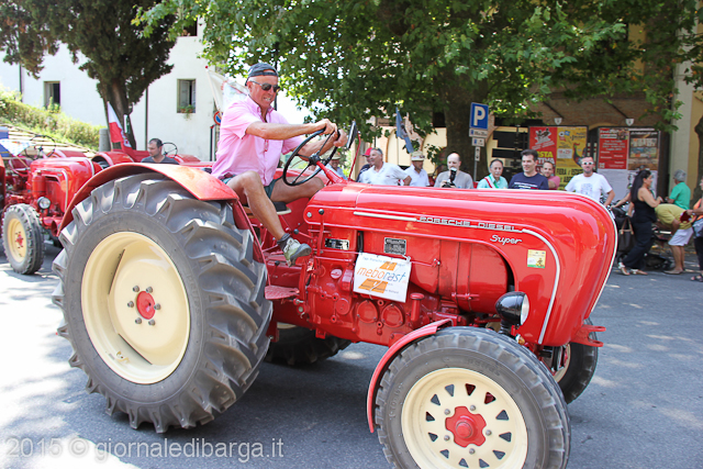 Sono passati anche da Barga questi meravigliosi trattori a marchio Porsche che stasera arriveranno a Ponte a Cappiano (Fucecchio), dopo tre giorni di viaggio, per partecipare al raduno del gruppo Burggräfler Schlepperfreunde, che comprende dodici appassionati dei mezzi agricoli prodotti dalla nota casa tedesca.