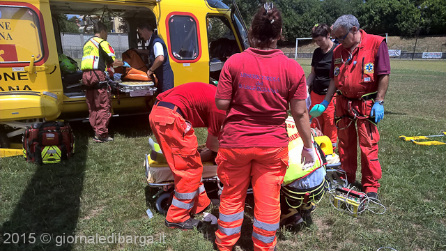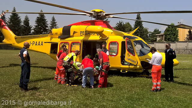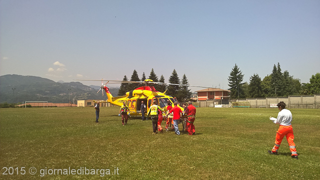 Per poterlo trasferire sull’elicottero, i volontari della Misericordia di Barga hanno dovuto aprire un varco nella rete di recinzione dello stadio “Johnny Moscardini” di Barga dove in quel momento non si trovava nessuno.