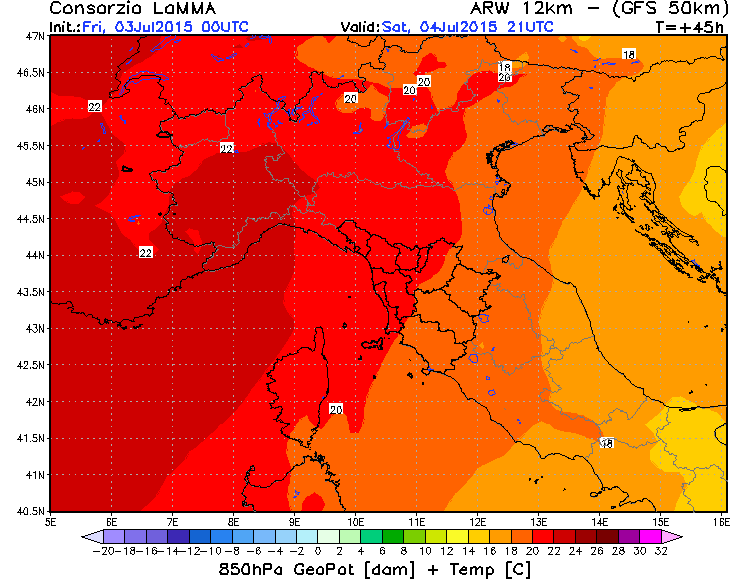 La mappa di apertura, tratta dal sito del Lamma Toscana ed incentrata nella notte di sabato, mostra chiaramente il richiamo caldo abbracciare anche le nostre zone con l’isoterma della + 20 +21 gradi in azione sul nostro territorio e, tra lunedi e martedi, potremmo salire ancora di un paio di gradi.
