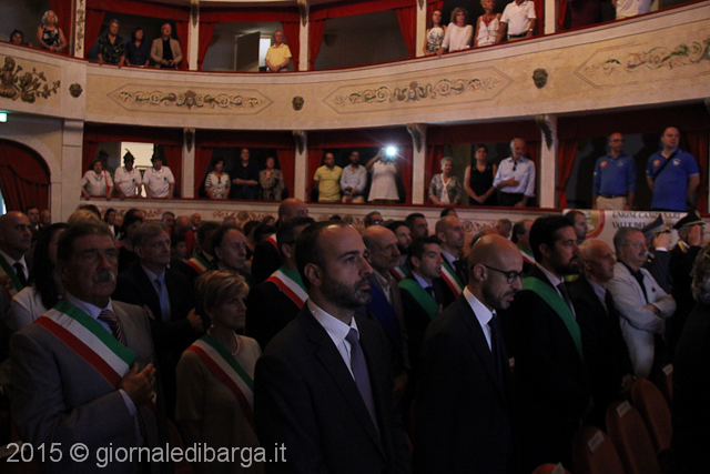 Momento centrale ovviamente la cerimonia svoltasi al teatro davanti alle più alte cariche civili e militari della provincia di Lucca, a cominciare dal prefetto Giovanna Cagliostro per finire a tanti sindaci del territorio. Era presente anche il neo assessore regionale Marco Remaschi, alla sua prima uscita pubblica dopo la nomina da parte del Governatore Enrico Rossi.