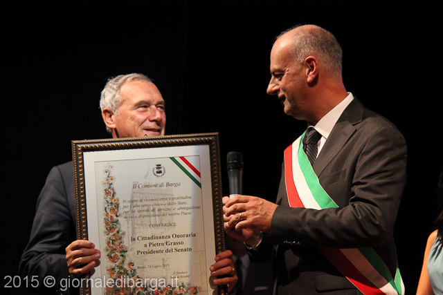 Il Presidente del Senato Pietro Grasso, per tutto quello che ha fatto in quarant’anni di leale servizio allo stato rappresenta al meglio ed il meglio di tutti gli italiani – ha aggiunto – difendendo in modo significativo la legalità e la verità. E’ per tutti noi un punto di riferimento e per tutto questo il Comune di Barga ha voluto conferirgli la cittadinanza onoraria e tributargli questo “San Cristoforo” speciale”.