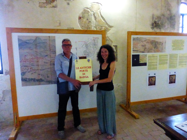 Prima tappa fu la mostra allestita in occasione delle estive feste barghigiane del 2013 “Aspettando San Rocco”, in cui i moltissimi visitatori, ebbero occasione di vedere come fossero state le antiche porte di Barga nella ricostruzione visiva effettuata dall’arch. Pier Carlo Marroni sulla scorta delle realizzate ricerche storiche condotte da Pier Giuliano Cecchi nell’Archivio Comunale di Barga. Visto il clamoroso successo, nell’Autunno di quell’anno, la mostra fu spostata alla Biblioteca di Barga di Villa Gherardi, dove si ebbe un rinnovato successo a conferma della bontà del lavoro.