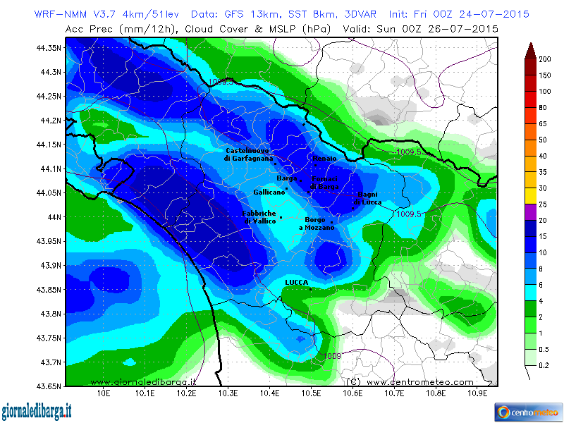 Sabato 25 luglio: peggiora sin dal mattino con temporali in arrivo da ovest. Stante la grande energia accumulata nei bassi strati i fenomeni potranno assumere carattere di forte intensità con grosse differenze in termini di cumulate finali anche nello spazio di pochi km. Non si escludono locali grandinate e colpi di vento. Tende a migliorare dal primo pomeriggio con ancora un pò di instabilità in appennino e nelle zone ad esso più vicine. Miglioramenti deciso dal tardo pomeriggio e serata con cielo nuovamente sereno.