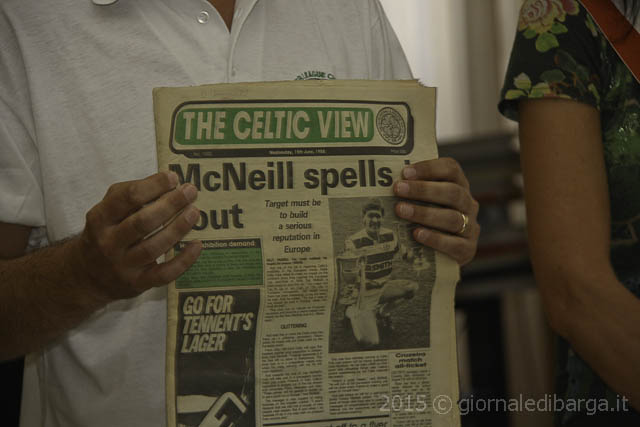 Per quanto riguarda la cerimonia alla iblioteca Comunale, dopo i rigraziamenti della vice sindaco Campani è avvenuto lo scambio di una stampa di Barga realizzata dall’artista John Bellany data in regalo al presidente Alessandro Boretti, il quale ha donato alla Biblioteca di Barga una copia di una delle uscite del periodico Celtic View, settimanale dedicato al Celtic e alla sua storia.