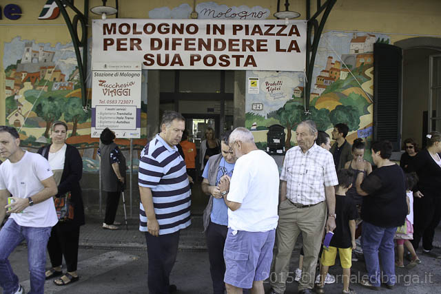 Mologno dice no alla chiusura del suo ufficio postale prevista per il prossimo 7 settembre, nell’ambito del piano di razionalizzazione presentato da Poste Italiane. Lo ha fatto stamattina con una protesta di tutta la popolazione che si è ritrovata dinanzi alla stazione di Barga – Gallicano, sede dell’ufficio.