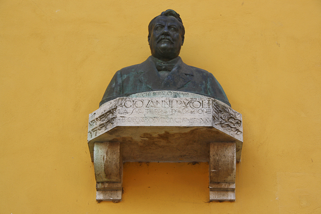 Quest’osservazione, perché l’area è nel pieno dei lavori di riqualificazione, m’induce a suggerirti una migliore locazione del busto, cioè porlo all’interno di una delle due nuove aree a verde, forse quella più ampia. Così facendo, finalmente quella piazza, a tutti gli effetti, diverrebbe la piazza Giovanni Pascoli.