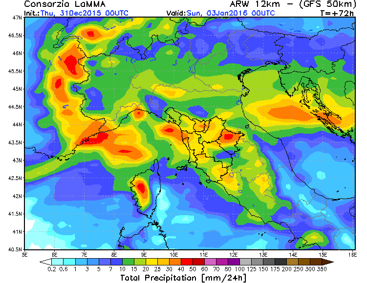 Sabato 2 gennaio: giornata perturbata con precipitazioni intense e persistenti. Inizialmente pioggia anche in montagna quota neve in calo nella sera e nella notte su domenica fino sui 1200 metri circa. Temperature in calo