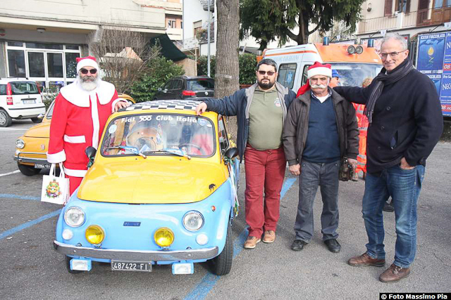 Non è mancato come al solito il Babbo Natale delle 500 che non si è risparmiato in selfie e fotografie con i bambini che sono arrivati in piazza.