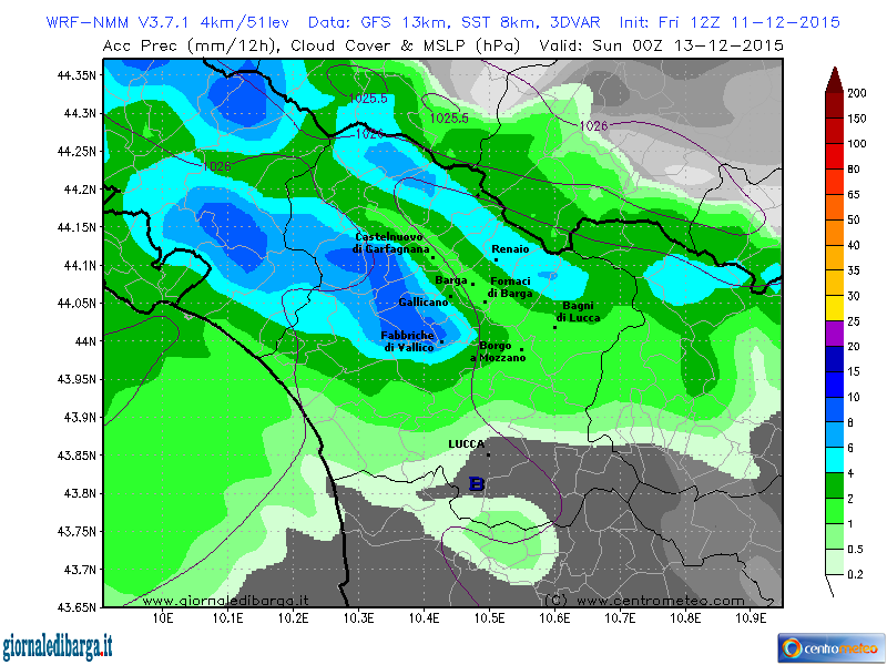 Sabato 12 dicembre: nubi in arrivo sin dal mattino con qualche debole ed isolata precipitazione possibile nel corso della giornata. Temperature in calo nei valori massimi, venti deboli sud occidentali.